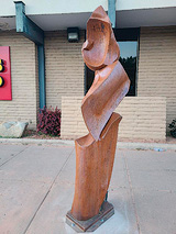 Moab ArTTrails, the non-profit public arts organization, is pleased to reveal the annual sculpture chosen for purchase and donation to the public collection. “This year the votes were clear’, said Creative Director Christy Williams Dunton. The winning piece chosen for inclusion in Moab’s permanent sculpture collection is Arizona Artist Steve Grater’s “Matriarch”, a stately steel patinaed work which currently stands along the Center Street face of Wells Fargo bank. “The public input really informs so much about which sculptures connect with the Moab and Grand County residents, and it’s a such a pleasure to be able to add one more”. said Williams-Dunton.