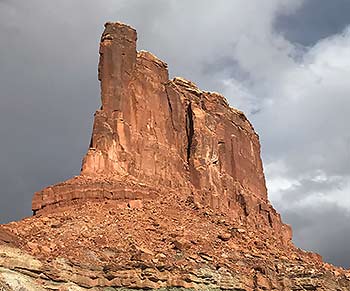 Since southeastern Utah’s eolian sandstones are a defining feature (if not the defining feature) of canyon country, getting to know them and ultimately learning to tell them apart can add to the appreciation and enjoyment of this landscape. While similar, each of these sandstones contribute distinctive features to the land: the slickrock spires of the Cedar Mesa, the broad bench of the White Rim, the soaring cliffs of the Wingate, the rounded rock domes of the Navajo, the especially smooth and steep slickrock slopes of the Entrada, and its sheer white cap of the Moab Member.