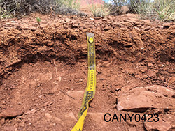 | Thin, rocky, poorly-developed soil in one of the USGS-NPS study plots. Photo courtesy of Chris Benson |
