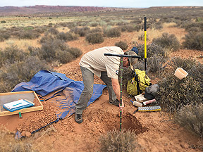 Chris Benson digging a soil pit in a blackbrush community in Arches National Park. Photo courtesy of Chris Benson |