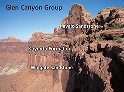 The Glen Canyon Group at the Island in the Sky in Canyonlands National Park where the three units make a nearly continuous cliff. |