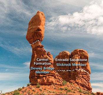 Geologists spend a great deal of time studying each rock layer in detail, including its fossils and where it crops out across a geographic area, in order to understand Earth history. Fortunately for park visitors, hikers, and others out enjoying canyon country scenery, most layers have easily observable features that make them recognizable without having to undertake such scientific study. Many rock layers have characteristics that form distinctive landforms. These characteristics do relate back to their geologic history, but also can be appreciated just purely from a landscape sense.
