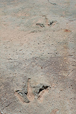 It takes specific geological conditions for a footprint or other trace of an organism’s life to be preserved. Think of the last time you walked on a beach. Your tracks were only distinct on damp (but not too wet) sand, but they were likely washed away with the next wave. Tracks must be buried by other sediments before they are destroyed, and dung must also be buried before it decays. Other interesting facts about trace fossils is that they are found only where the animal lived (sometimes carcasses or logs can be carried by rivers far from where the organisms lived) and a single organism can leave many trace fossils or none at all.