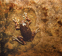 Amphibians. Toads, frogs, and salamanders inhabit canyon streams, potholes, stock ponds, or other water sources in Canyon Country. Toads, known for their warty, dry skin gather to breed in pools or ponds. The males chorus at night to attract females; the red-spotted toad produces a repetitive trill that pierces the desert night.