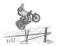For years, movie fans believed that the star Steve McQueen made the big barbed-wire fence jump at the finale of “The Great Escape” but the stunt was actually performed by Ekins. Although McQueen undertook the rest of the bike work in the film, the film’s producers were too nervous to allow him to make the iconic jump himself. Five years later, McQueen was given a late call to the “Bullitt” set one day, and found Ekins with his hair sprayed blond performing the most dangerous stunts around the streets of San Francisco. McQueen then shouted “you did it to me again!” referring to the earlier scene-stealing from “The Great Escape”. Ekins regularly contributed to documentaries and biographies on Steve McQueen with some authority, given their close friendship until the actor’s death in 1980.