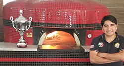 | Israel Tilta stands in front of Antica Forma’s wood fire oven |