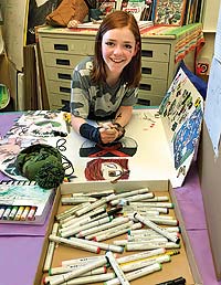 | Happiness for artist Maddy Russo is a pile of art supplies and time and space enough to work. |