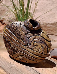 Ceramic artist Joanne Savoie is our featured artist this month. She has “thrown” her pottery around Moab for several decades. Her unique, fun, and functional designs come from the geologic forces that have shaped the mountains, rivers and canyons that surround her home in Moab. Describing her inspiration, Savoie says, “The geologic exposures of erosion by wind, water and fire, create the textures, patterns, colors and possibilities for artistic expressions.” There’s always something new and surprising fresh out of her kiln!