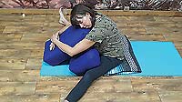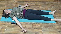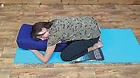 In this posture, we will create rest and relief physically, emotionally, and mentally. Allow your breath to be natural. It is nice to have a bolster or a couple of pillows stacked to rest on to, and a soft surface or cushioning for underneath your knees.