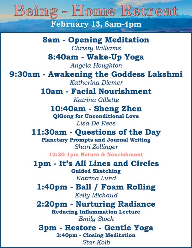 Being - Home Retreat. Free Online Event. Saturday February 13, 8am-4pm. Register: www.sundari-designs.com