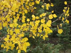 Cold tolerant and fast growing (two to five feet per year), aspens are widely distributed over much of North America, with Utah and Colorado the home base for the largest portion of natural acreage in the world. Their heart-shaped leaves are uniquely attached to a flexible, lengthwise stem. This anatomy provides them the freedom of movement to rustle in the slightest breeze, a charming characteristic referred to as “quaking.” It’s the shortening of daylight that triggers the dramatic change from green to gold. That’s the signal for the chlorophyll to fade, followed by the breaking through of the brilliant yellow pigments called carotenoids that we find so mesmerizing in the fall.
