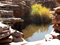 Just beyond the second pool, some huge gray boulders, which have the guardian appearance of sentinels blocking your passage, are your clue that now is your chance to exit the canyon. To scope out your route from the bottom, scan the slope to your left. A pile of rocks called cairns marking the route up the short ascent will show you the way.