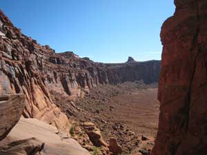 The term “Jacob’s Ladder” suggests a title for a biblical story, not a trail that clings precariously to a break in the side of a 400-foot cliff. Accented with abrupt switchbacks, it is also commonly known as “Jackson’s Ladder” – a more appropriate name since John Jackson, a forceful rancher, established this steep, ladder-like trail as a short cut from the Shafer Basin country to Moab in the early 1900’s.
