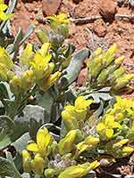 Gradually the pathway becomes more defined, freeing me to concentrate on the fresh yellow blooms of Newberry twinpod - one of the first flowers of spring - as well as the towering wall of sandstone shooting down from the Gold Bar Rim – the sharp edges of Culvert’s rim - and the huge conglomeration of cliffs and domes coming at me from all directions.