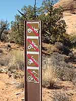 To get to the Poison Spider trailhead, from Moab drive north on Highway 191 for about four miles. Turn left on Highway 279 (Potash Road) and drive 5.9 miles. Then turn right at the sign and drive to the end of the parking area, where this hiker’s only trail begins between the billboards and the restroom.