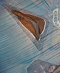 “Footprints of Water” exposes and frames the infinite signatures water leaves in its travels through the desert landscape. Mud, ice, clouds, river rapids, decomposing leaves in a stream, and even condensation trickling down a window at sunrise become the focus of attention through Hughes’ lens.