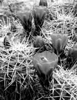 covered, slender barrel shaped cactus, arise bouquets of delicate