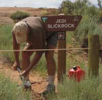 Movies have inspired a few recent trail names. Mag-7 aka The Magnificent 7 Trail System includes seven trails stretching from Highway 313 to the Potash Road (SR-279). Mag-7 features magnificent views of Bull Canyon, Gemini Bridges, Gold Bar Rim, and Poison Spider Mesa. “Star Wars” inspired trail names, Jedi Slickrock and the proposed Wookiee’s Way, are in the Tusher Mountain Bike focus area, just east of the Bartlett Slickrock.