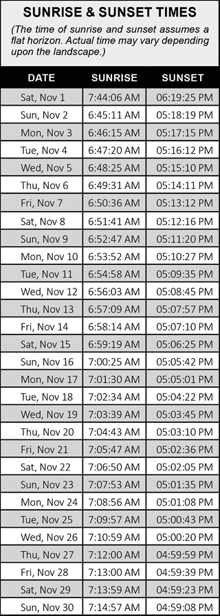 The early part of the month will have one more bright highlight. The Beaver Moon will be the largest full moon of the year on November 5. Because the Moon is full when it is near its closest point to Earth, it will appear larger and brighter, also known as a supermoon. The latter part of this year is full of them. Full moons of both October and December qualify as supermoons too!