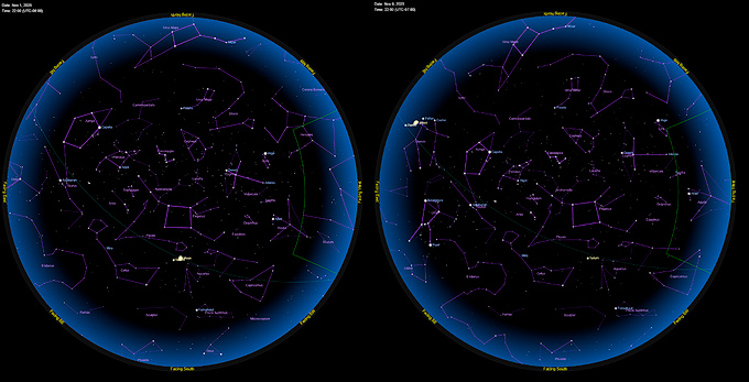 Saturn and the Moon will appear close together in the constellation Aquarius on November 1, 2025. Then, Jupiter and the Moon will appear close together on November 9-10 in Gemini. Credit: Sky & Telescope Interactive Sky Chart, powered by Heavens Above.