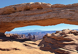Mesa Arch is popular and can be very crowded at the break of day, as photographers lie in wait for the sun’s rays to light up the underside of the arch and distant canyon features. But, unlike Hollywood paparazzi, shutterbugs won’t need to chase this star for a photo, they just have to plan around sunrise times. Because the La Sal Mountains are east-southeast of Moab, the sun appears slightly later than in the valley. In early April, sunrise at this arch will be about 7:00–7:15 a.m., by mid-April it will be 6:50–7:00 a.m., and at 6:30–6:45 a.m. by the end of the month.