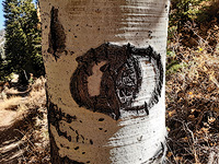 ![]() Prospectors discovered gold in an area above Pinhook Draw in the La Sal Mountains around 1888, and by 1892 a minor gold rush was happening in the La Sals and Abajos. Lured by the dream of becoming rich, prospectors established a small community called Miners Basin up in the mountains. The “town” bustled with a post office, blacksmith forge, hotel, and two saloons which probably made more money than the miners themselves. However, the “boom” never really materialized and within 20 years most of the miners and those that followed these fortune-seekers moved on to other pastures. Nowadays, a different type of gold lures explorers up into the mountains in the fall – aspen gold. As fall begins to creep down the mountain sides, the aspen and oak begin a transformation from verdant forests to ones cloaked in yellow and dotted with reds, purples, and browns as oaks, aspens, and the leaves of other smaller shrubs and trees begin to senesce. ![]() The process of senescence occurs within the deciduous leaves of these hardwoods and is initiated by less sunlight and cooler temperatures. As the hours of daylight shrink, the chlorophyll pigments within the leaves begin to breakdown, unmasking other pigments and changing the leaf color from green to gold, and sometimes in the case of the aspen tree, a reddish-orange. The clown white powdery coating on the bark of aspen trees was once thought to be like a thin layer of sunscreen, protecting the tree’s trunk. A study in 2014 in Boulder, CO revealed that the tree sheds these outer cells instead of forming them into a thick bark (trees older than around 30 years do show thickened bark around the base). This is a unique form of bark shedding, but areas where limbs have fallen off or elk have chewed on branches may have thicker bark to protect these wounds. A thin layer of bark cells, beneath the chalky white ones, can contain photosynthetic pigments which give off a greenish or orangish cast when the white exterior cells are removed. These underlying cells enable the trees to continue to photosynthesize even after the leaves have dropped off. Is this a function to enable this pioneer species to keep pace with a rapid growth and become established before the slower growing conifers invade? Perhaps it is to keep producing the sugars and starches necessary for plant growth in environments that have a short growing season, such as at high elevation? Perhaps these and other reasons yet to be discovered. ![]() No matter the reasons, hiking up through the aspen forests from Warner Lake to Miner’s Basin leads one past the clown-white bark of the aspens and, at times, under a rain of aspen leaves fluttering towards the earth. The trail passes Gold Knob a promontory with exceptional views of the surrounding peaks and the redrock desert below, before heading down to Miner’s Basin and the ruins that remain of this boom-and-bust community where the only gold found is in the aspen leaves fluttering in the breeze. NOTE: Aspen glyphs, images or names carved into the tree’s trunks, has some historical significance but please refrain from adding initials or images to these trees. Today, this practice is considered vandalism and is illegal on public lands.